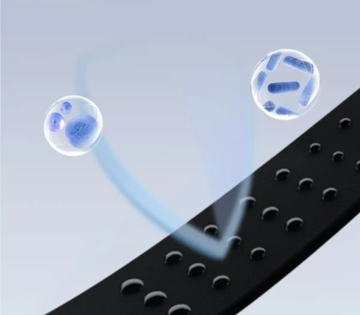 La correa torácica utiliza tecnología antibacteriana y desodorizante, junto con silicona antideslizante. Su diseño curvado se adapta al pecho, garantizando un seguimiento dinámico sin fricción. Cuenta con protección impermeable IPX7 y un peso ultraligero de solo 12.4 g.